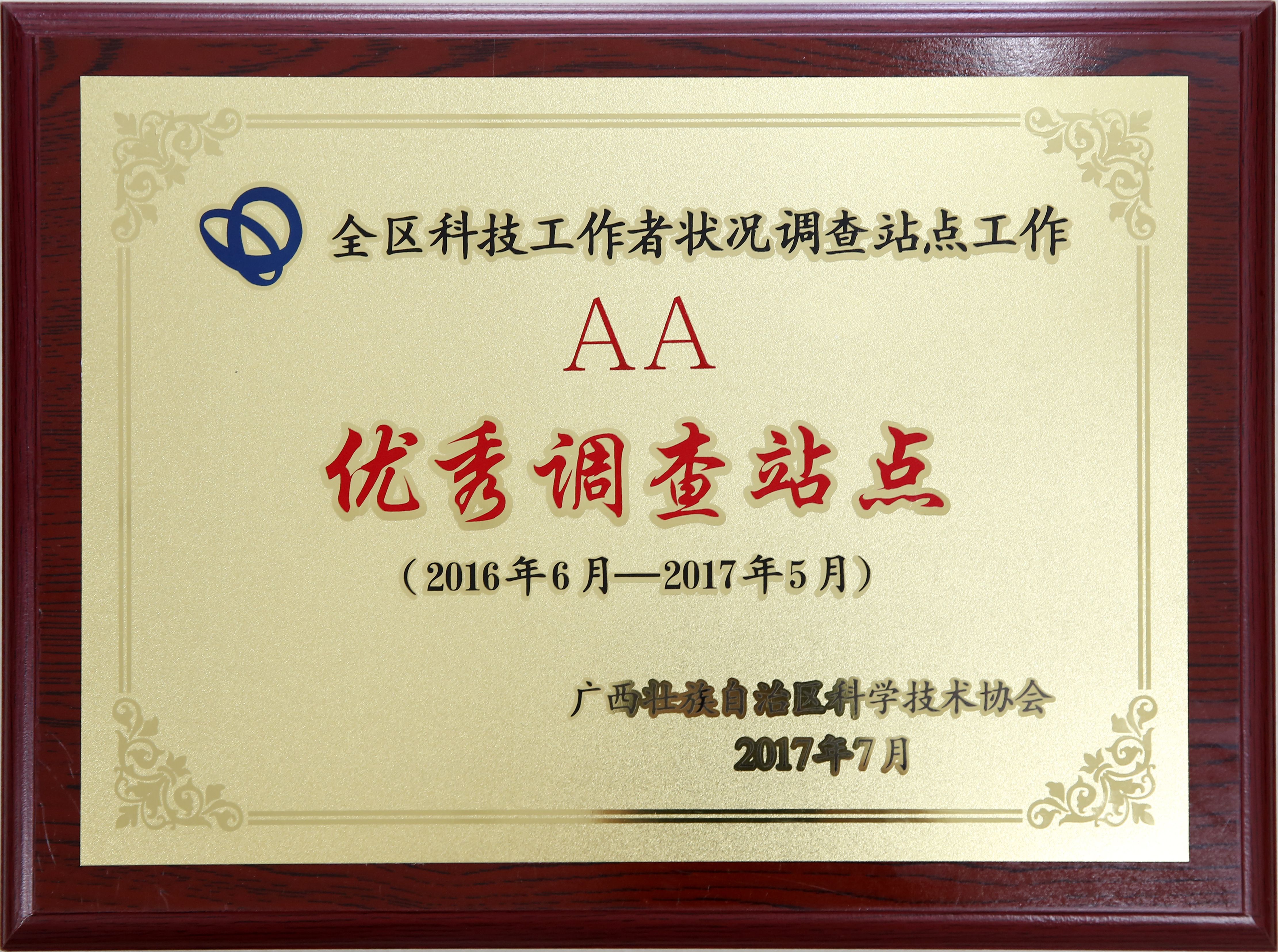 2016年-2017年評為全區(qū)科技工作者狀況優(yōu)秀調(diào)查站點(diǎn)