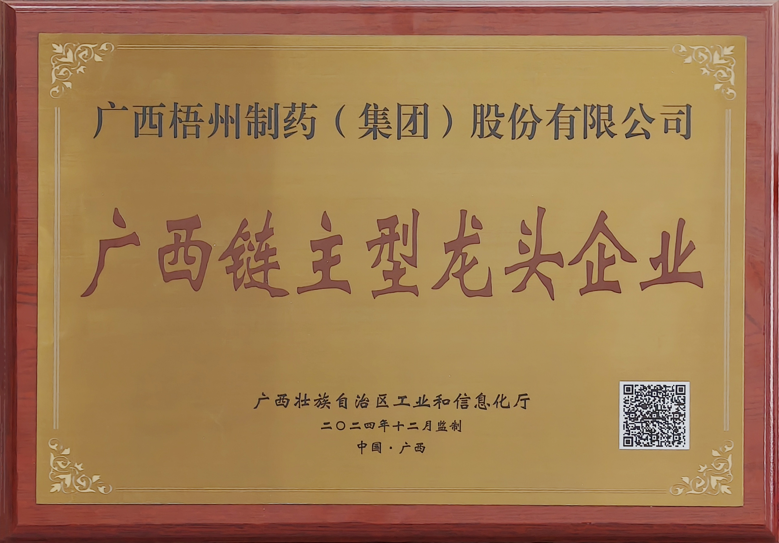 廣西梧州制藥(集團)股份有限公司榮獲廣西鏈主型龍頭企業(yè)