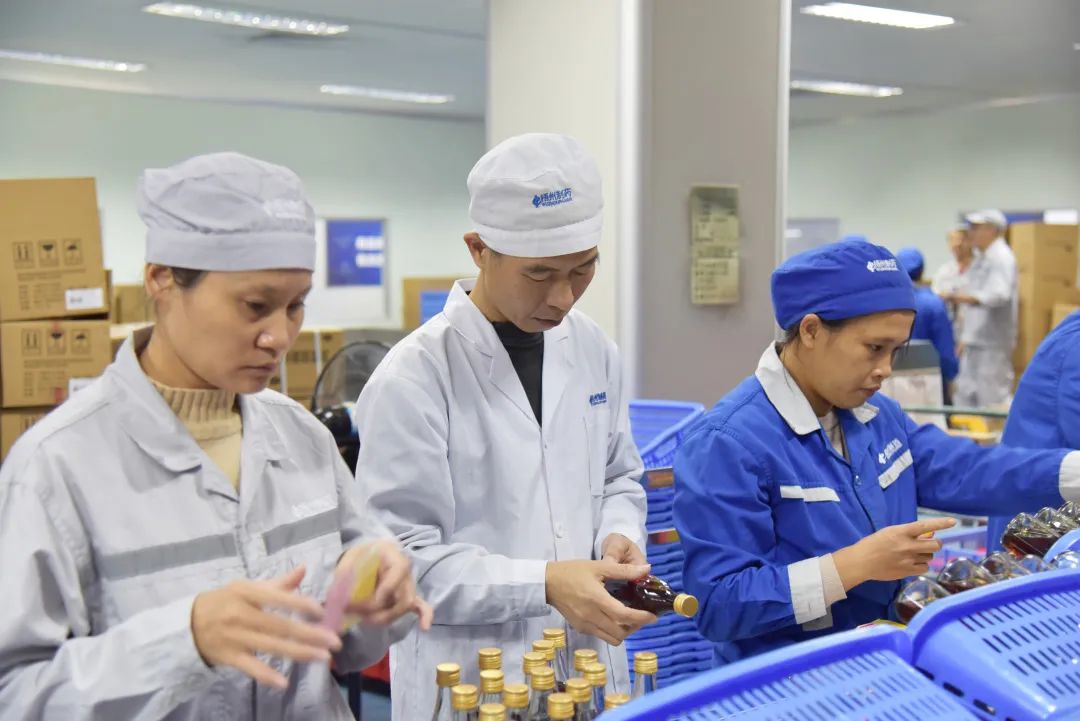7:50配料開始,8:50灌裝間機(jī)器聲響起,9:00洗瓶間人員已經(jīng)忙碌而有條不紊工作起來(lái),待前端各工序正常運(yùn)行后,他又往包裝區(qū)域巡場(chǎng),“阿嬌,這張產(chǎn)品合格證印得不太清楚,換一張吧?!薄皟蓚€(gè)批號(hào)不一樣的,阿炳你搬箱時(shí)注意一下?!薄靶氯顺鮼?lái)乍到,對(duì)于包裝不熟手很正常,產(chǎn)品需要多抽檢,新人亦要多提醒?!倍嗄甑墓ぷ鹘?jīng)驗(yàn),讓他在巡檢中準(zhǔn)確快速地根據(jù)當(dāng)前狀態(tài)捕捉到質(zhì)量控制關(guān)鍵點(diǎn)。