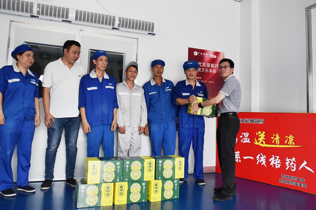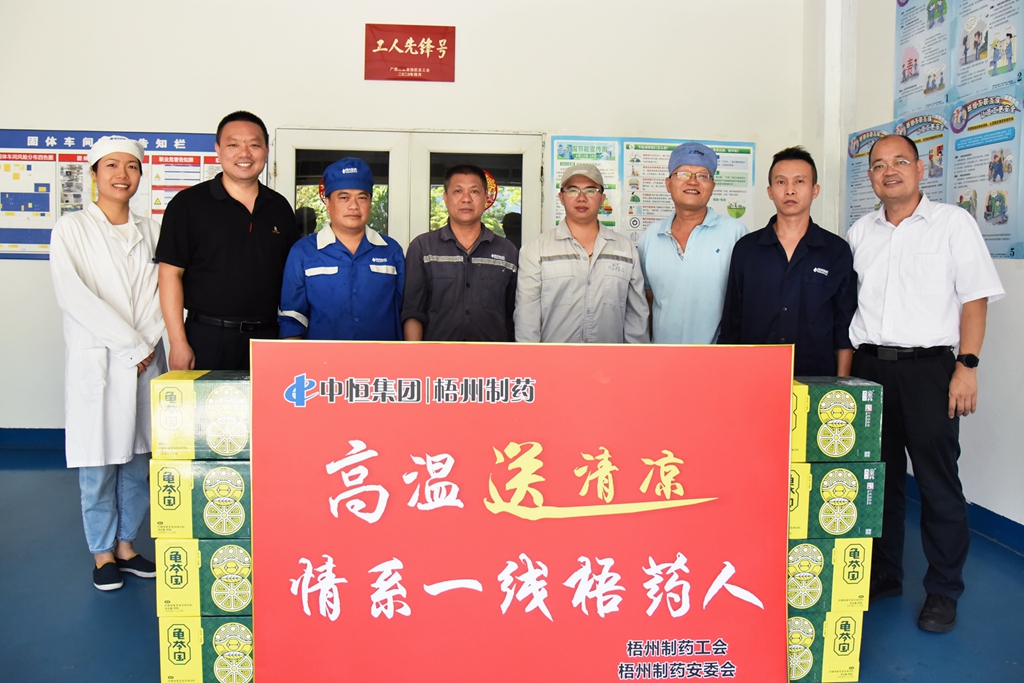 夏日炎炎,驕陽似火。持續(xù)的高溫給工作在一線的職工帶來了嚴(yán)峻的考驗,但敬業(yè)的他們不懼“烤”驗,堅守崗位,用汗水換來了公司生產(chǎn)經(jīng)營工作的順利進行。為了表達公司對這些在高溫崗位工作職工的關(guān)心關(guān)愛,近日,梧州制藥工會聯(lián)合公司安委會開展2022年“高溫送清涼 情系一線梧藥人”慰問活動。
