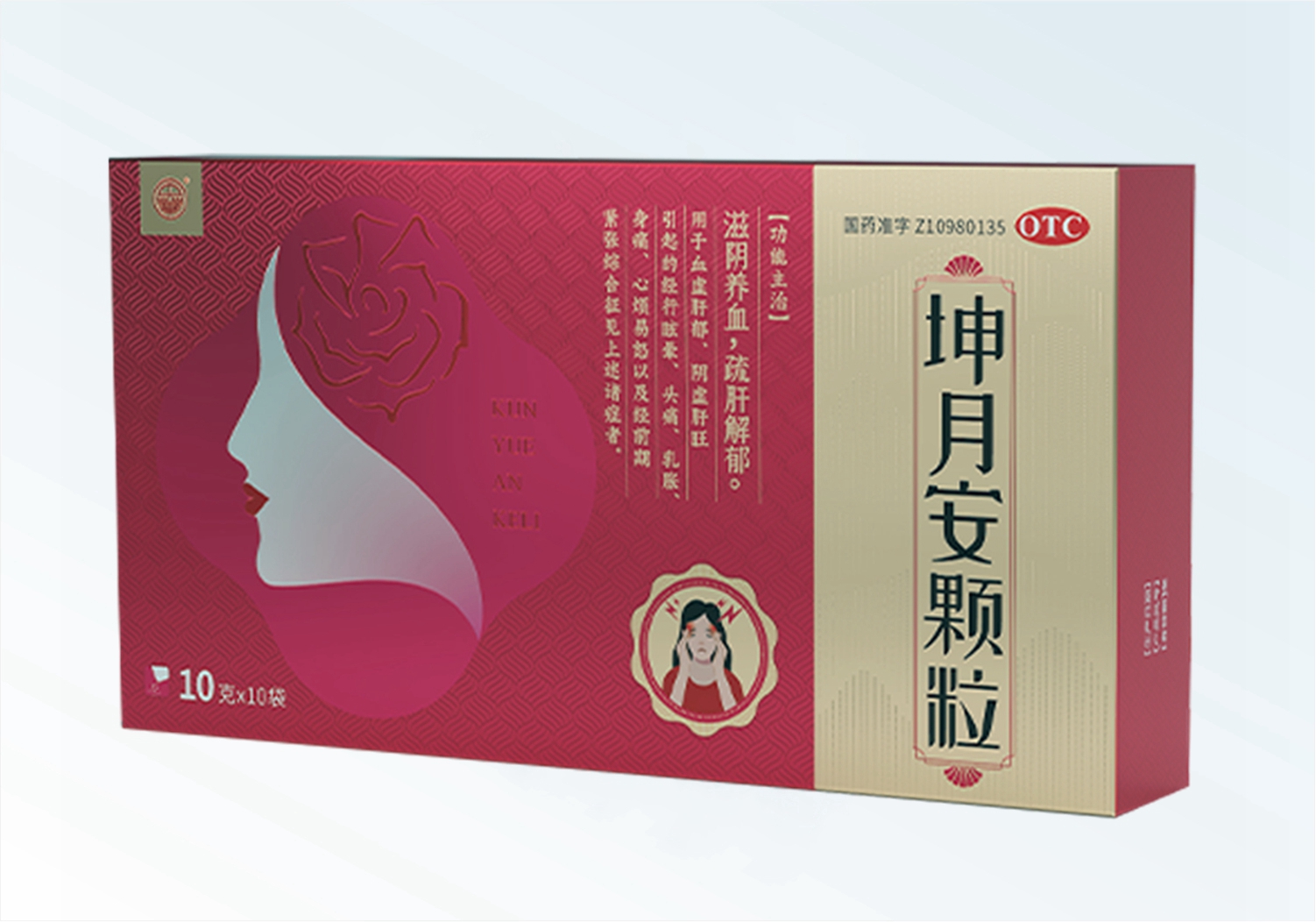 藥品成分白芍, 酸棗仁(炒), 桑寄生, 續(xù)斷, 麥冬, 石斛 ,菊花, 蒺藜, 黃芩(炒) ,梔子(炒) ,龍膽(炒) ,青皮, 郁金, 合歡皮, 絲瓜絡。輔料為糊精、蔗糖。功能主治滋陰養(yǎng)血,疏肝解郁。用于血虛肝郁、陰虛肝旺引起的經(jīng)行