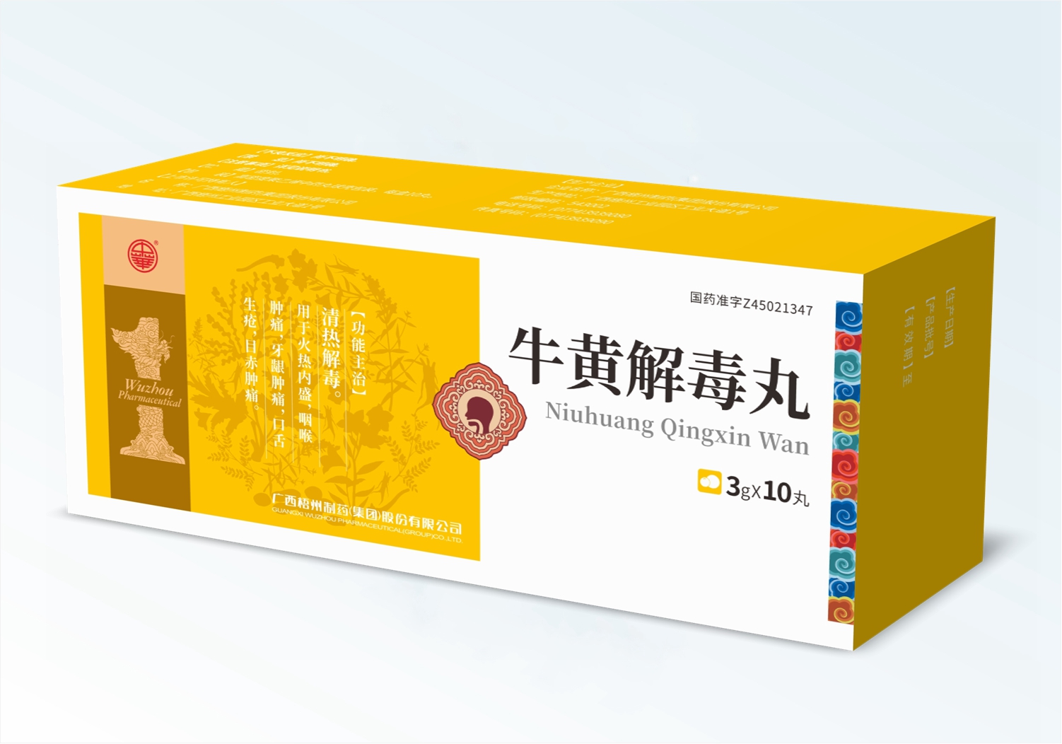藥品成分體外培育牛黃、水牛角濃縮粉、人工麝香、珍珠、朱砂、雄黃、黃連、黃芩、梔子、郁金、冰片。功能主治清熱解毒,鎮(zhèn)驚開竅。用于熱病,邪入心包,高熱驚厥,神昏譫語;中風昏迷及腦炎、腦膜炎、中毒性腦病、腦