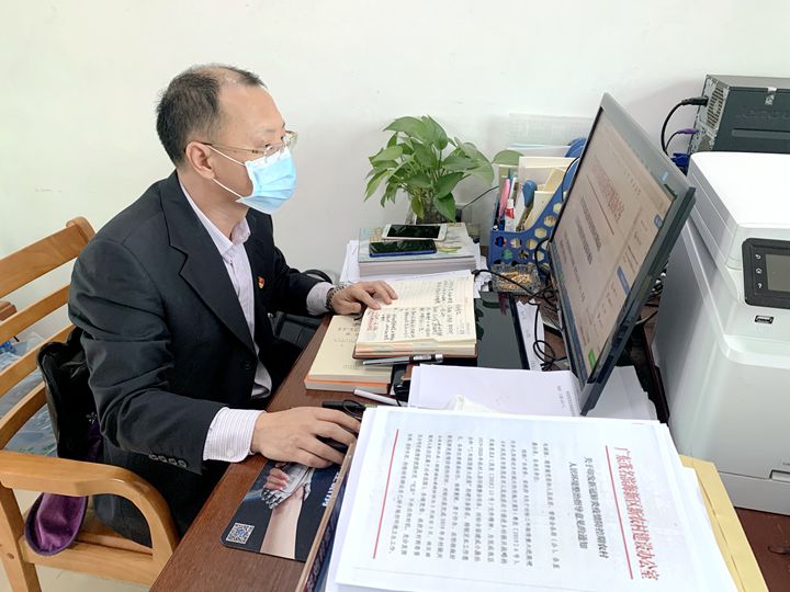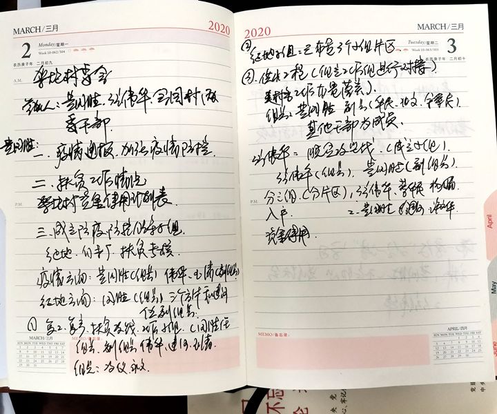 全村1412戶村民,他配合村委深入排查每一名村民的動(dòng)向及身體狀況,從外地回來人員返鄉(xiāng)前14天的去向更是核查重點(diǎn),他都詳細(xì)詢問并協(xié)助登記造冊。由于電腦操作不夠便捷,他便夾雜了一些手寫的臺賬資料,便于走村穿戶時(shí)仍能及時(shí)整理出村里人員健康動(dòng)態(tài)信息并按時(shí)向上級部門報(bào)送。特別是在架炮村發(fā)現(xiàn)一名廣州返鄉(xiāng)人員與新冠肺炎確診患者有密切接觸史后,他迅速指導(dǎo)開展落實(shí)居家隔離措施,并每天上門跟蹤該返鄉(xiāng)人員的體溫及身體狀況,直至其解除隔離,他才大大的松了一口氣。