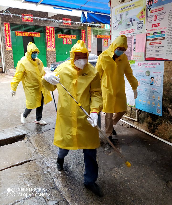得到組織批準(zhǔn)的當(dāng)天下午,黃杰就自駕車,帶著集團(tuán)捐贈(zèng)社區(qū)的120斤消毒水等防疫物資趕到了南街社區(qū)居委會。一去到,他就背起了40斤重的消毒噴桶,跟著居委會工作人員開始了走街串巷的消毒工作。為加強(qiáng)防疫防護(hù)知識的宣傳,有長期駐村扶貧經(jīng)驗(yàn)的黃杰還用黎話自編了一個(gè)順口溜: