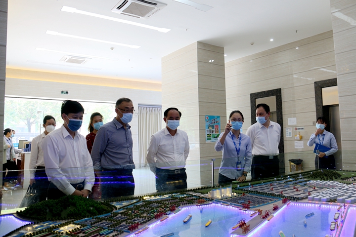 楊文波一行觀摩了博賀新港區(qū)總體規(guī)劃沙盤,詳細(xì)了解了博賀新港區(qū)總體規(guī)劃和在建的粵西LNG造陸、30萬噸原油碼頭、10萬噸級成品油碼頭等一批省、市重點項目的推進情況。
