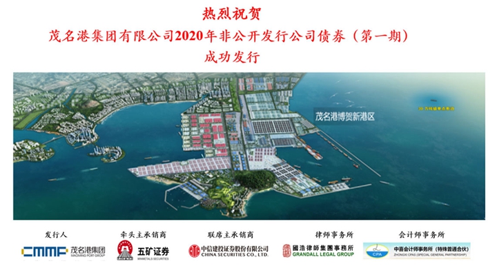 近日, 茂名港集團有限公司2020年非公開發(fā)行公司債券(第一期)成功發(fā)行5億元,這是集團繼2019年成功發(fā)行3億元非公開發(fā)行公司債券后再次成功發(fā)行。