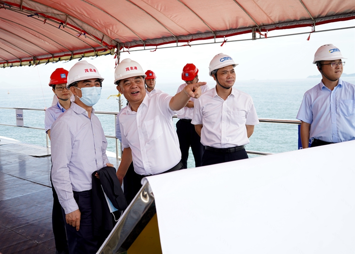 陳林夕一行深入到茂名港博賀新港區(qū),實地考察了茂名港博賀新港區(qū)各省市重點項目的推進情況。考察中,陳林夕對博賀新港區(qū)宏大的總體規(guī)劃和蓬勃的發(fā)展態(tài)勢表示贊嘆。他表示,港口建設事關茂名市經(jīng)濟建設的百年大計,茂名港集團作為市屬企業(yè)的“排頭兵”,發(fā)展前景十分廣闊,擁有較好的發(fā)展?jié)摿皡^(qū)位資源優(yōu)勢。他希望,以本次調(diào)研為契機,充分發(fā)揮國家開發(fā)銀行金融服務優(yōu)勢,以茂名港集團重點項目為抓手,建立緊密的合作關系,提供契合集團發(fā)展方向的創(chuàng)新金融服務,攜手茂名港集團實現(xiàn)互利共贏,共同推動茂名地區(qū)經(jīng)濟發(fā)展。