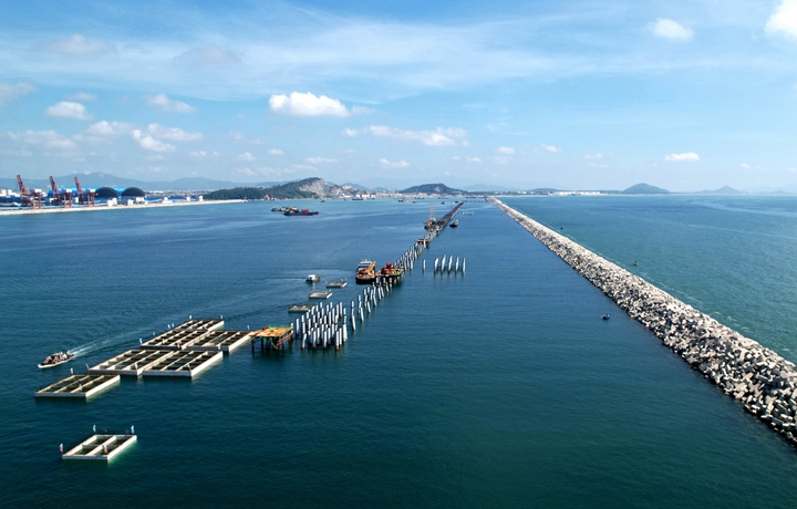 自今年7月11日安裝首個沉箱以來,茂名港集團東區(qū)油品碼頭項目部與各參建單位圍繞沉箱安裝這一碼頭建設的“大”難題,時刻跟蹤施工水域氣象動態(tài),精心收集整理潮位數(shù)據(jù),克服過往漁船頻繁及涌浪頻發(fā)等不利因素,高效合理利用有效潮作業(yè)工期,積極統(tǒng)籌,對每個沉箱安裝都制定了詳細的作業(yè)計劃和預案,安全高效地將12個沉箱全部安裝完成! 沉箱全部安裝完成是東區(qū)油品碼頭建設的重要里程碑,標志著項目建設邁出最堅實一步,也為東區(qū)油品碼頭高質(zhì)量建設奠定堅實的基礎。(鐘春林) |