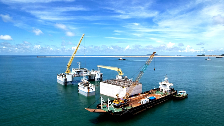 9月9日凌晨3時,茂名港集團重點項目東區(qū)油品碼頭工程的最后一件重達1320.5噸、高達18.5米的沉箱穩(wěn)穩(wěn)到位,順利完成安裝,標志著東區(qū)油品碼頭項目E2碼頭主體工程全面轉(zhuǎn)入上部結構施工階段。