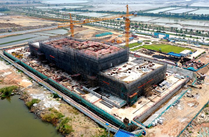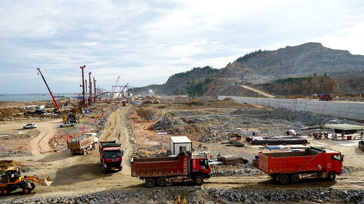博賀新港區(qū)建設現(xiàn)場往來工程車輛川流不息,工地人員各司其職,各項工序有條不紊,處處展現(xiàn)出一派熱火朝天的建設景象。