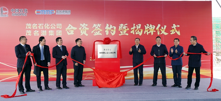 揭牌儀式 在與會(huì)人員的共同見證下,毛遠(yuǎn)洪與肖炳璋分別代表茂名石化公司、茂名港集團(tuán)簽訂了茂名石化博賀港儲(chǔ)運(yùn)有限公司合資合同。與會(huì)領(lǐng)導(dǎo)及雙方代表共同為茂名石化博賀港儲(chǔ)運(yùn)有限公司進(jìn)行了揭牌儀式。(何夢(mèng)娉) |