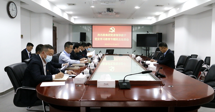 1月26日下午,按照黨中央、省委、市委和新區(qū)黨工委部署要求,茂名港集團(tuán)黨委領(lǐng)導(dǎo)班子召開黨史學(xué)習(xí)教育專題民主生活會(huì),以習(xí)近平新時(shí)代中國(guó)特色社會(huì)主義思想為指導(dǎo),認(rèn)真學(xué)習(xí)貫徹黨的十九屆六中全會(huì)精神,聯(lián)系實(shí)際,查擺問(wèn)題,自我剖析,深入開展批評(píng)與自我批評(píng)。集團(tuán)黨委書記、董事長(zhǎng)王志華主持會(huì)議,濱海新區(qū)人力資源局副局長(zhǎng)梁曉翔到會(huì)指導(dǎo)。集團(tuán)黨委副書記、總裁肖炳璋,集團(tuán)黨委委員、副總裁楊超燦,集團(tuán)黨委委員、副總裁栗鵬,集團(tuán)黨委委員、紀(jì)委書記、監(jiān)察專員陳軍,集團(tuán)黨委委員、總工程師蔡光章參加會(huì)議。