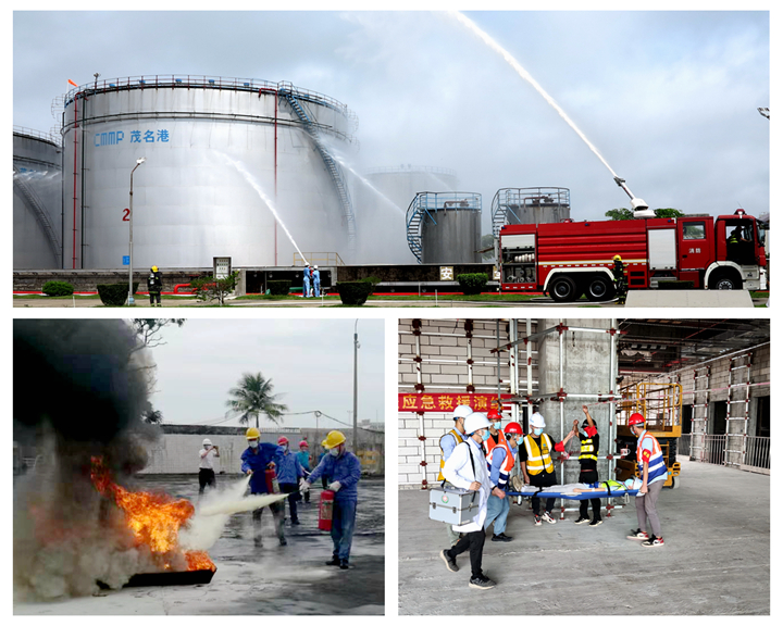 各單位負責(zé)人親自指揮、貼近實際、協(xié)同演練是本次演練的特點。中油王港公司針對油罐受雷擊著火和碼頭卸船軟管泄漏進行綜合演練,并邀請電白區(qū)消防救援大隊聯(lián)合演練,場面逼真,貼近實戰(zhàn);油品碼頭工程項目部聯(lián)合博賀海事處、電城鎮(zhèn)衛(wèi)生院進行水上作業(yè)防淹溺專項演練,醫(yī)護人員現(xiàn)場講解落水人員急救常識和心肺復(fù)蘇搶救法,較好普及應(yīng)急知識;港務(wù)中心項目部針對高處墜落進行專項演練,組織得力,取得實效;港口經(jīng)營公司開展港口設(shè)施保安及消防應(yīng)急演練,反恐措施得當(dāng);化工倉儲項目結(jié)合高溫天氣,開展受限空間作業(yè)人員中暑演練,提升應(yīng)急技能;東閣嶺礦石項目部開展高處落石專項演練,達到預(yù)期演練目標;濱海物業(yè)公司開展食品中毒演練,處置迅速有效;油品碼頭安裝工程和化工碼頭項目開展防臺防汛演練,提高“三防”應(yīng)急處置能力。