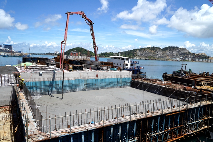 ▲東區(qū)化工碼頭項目胸墻澆筑作業(yè) 集團當前在建的10萬噸級成品油碼頭、東區(qū)化工碼頭等碼頭泊位建設進入沖刺階段,認真貫徹市委市政府關(guān)于加快口岸開放工作的要求,計劃今年竣工驗收;茂名港務中心已完成主體結(jié)構(gòu)施工,計劃今年建成投用,將為濱海新區(qū)樹立嶄新地標;30萬噸級原油碼頭報批報建工作取得重大突破,項目岸線申請獲得國家交通運輸部批復,前期工作不斷加快推進,即將進入實質(zhì)性實施階段,現(xiàn)代化深水大港的畫卷徐徐展開。 挖潛增效,劃轉(zhuǎn)老國企扭虧為盈,實現(xiàn)國有資產(chǎn)保值增值。