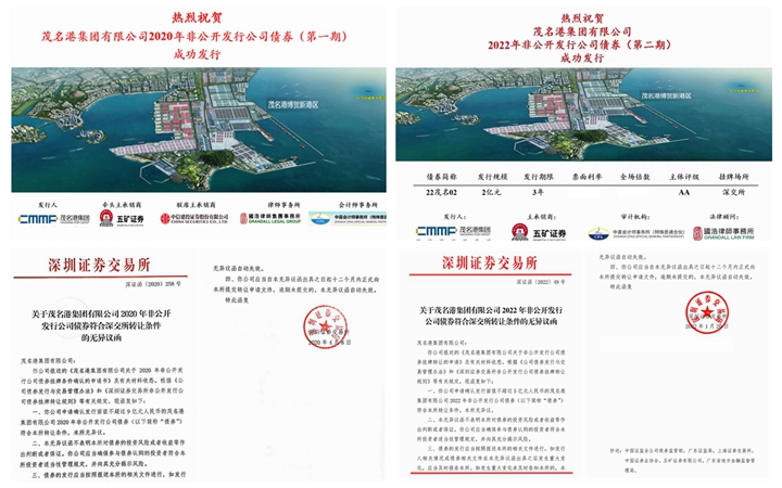2014年,成功發(fā)行了5億元的中期票據(jù),首開茂名國企融資先河。2018年以來,獲深交所批準發(fā)行非上市企業(yè)公司債19億元;截至2022年上半年,已成功發(fā)行四期共13億元非公開發(fā)行公司債券,創(chuàng)茂名市有史以來債券發(fā)行利率新低;2020年起,集團推動5個項目進入國家重大項目庫,成功爭取了5.42億政府專項債,切實保障項目建設資金需求,大大撬動博賀新港區(qū)重點項目建設,為濱海新區(qū)前期發(fā)展打下堅實基礎。