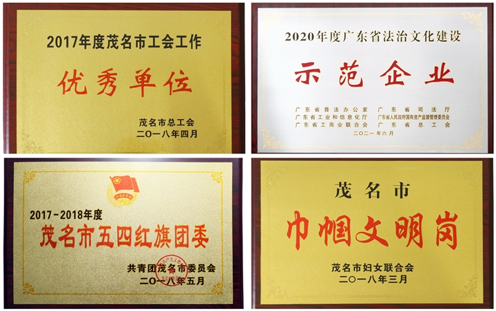 ▲集團榮譽獎牌(摘選) 幾年來,集團工會榮獲“茂名市工會工作優(yōu)秀單位”稱號,集團財務部女職工榮獲“茂名市巾幗文明崗”稱號;集團團委成立青年志愿者服務隊,助力雙創(chuàng)工作,連續(xù)三年榮獲“茂名市五四紅旗團委”稱號。集團憑借系列企業(yè)文化建設成果,先后榮獲 “中國企業(yè)文化建設典范企業(yè)”“廣東省先進集體”“廣東省優(yōu)秀企業(yè)”“廣東省企業(yè)文化建設最佳實踐單位”“廣東省法治文化建設示范企業(yè)”等榮譽,被譽為茂名市屬國有企業(yè)的標桿與典范。 結(jié)語 十年積跬步,足下至千里;仨甑姆欠舱鞒,茂名港人矢志艱苦奮斗,勇于擔當作為,爭當茂名向海而興排頭兵,在茂名經(jīng)濟發(fā)展史上留下堅實的足印。