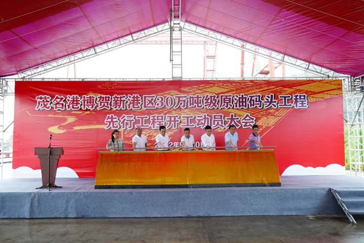 張有欽指出,茂名港博賀新港區(qū)30萬噸級(jí)原油碼頭工程先行工程開工動(dòng)員活動(dòng)是落實(shí)市委、市政府“建深水大港、興濱海綠城”發(fā)展戰(zhàn)略工作部署的具體行動(dòng),將有力推動(dòng)濱海新區(qū)打造千億級(jí)臨港產(chǎn)業(yè)集群。希望茂名港集團(tuán)在確保質(zhì)量安全的前提下,力爭(zhēng)30萬噸級(jí)原油碼頭項(xiàng)目早日建成投產(chǎn),為茂名市、濱海新區(qū)高質(zhì)量發(fā)展夯實(shí)基礎(chǔ)、積蓄后勁。濱海新區(qū)各相關(guān)部門要強(qiáng)化大局意識(shí)、服務(wù)意識(shí)、責(zé)任意識(shí)和協(xié)作意識(shí),優(yōu)化建設(shè)環(huán)境、提高行政效能,積極主動(dòng)做好協(xié)調(diào)服務(wù),幫助解決困難和問題,確保項(xiàng)目順利實(shí)施、加快建設(shè)。 王志華表示,茂名港博賀新港區(qū)30萬噸級(jí)原油碼頭工程是茂名港進(jìn)一步提升港口等級(jí)的標(biāo)志性工程,對(duì)完善博賀新港區(qū)碼頭布局、豐富港口服務(wù)功能、提升港口競(jìng)爭(zhēng)力具有重要意義。他要求,集團(tuán)上下要以這次動(dòng)員大會(huì)為新的起點(diǎn),全力推進(jìn)全年重點(diǎn)項(xiàng)目建設(shè)目標(biāo)圓滿完成。一是堅(jiān)定信心,提高政治站位,要緊緊圍繞“建深水大港、興濱海綠城”發(fā)展戰(zhàn)略,切實(shí)增強(qiáng)抓項(xiàng)目穩(wěn)發(fā)展的責(zé)任感緊迫感,把思想統(tǒng)一到全市抓項(xiàng)目促投資150天大會(huì)戰(zhàn)動(dòng)員會(huì)議的工作部署上來,加快推進(jìn)30萬噸級(jí)原油碼頭順利實(shí)施。二是真抓實(shí)干,積極主動(dòng)作為,按照市委、市政府關(guān)于茂名港口岸擴(kuò)大開放工作部署,集中力量,細(xì)化量化推進(jìn)項(xiàng)目流程和節(jié)點(diǎn)任務(wù),全力推進(jìn)博賀新港區(qū)碼頭建設(shè),確保全面完成各項(xiàng)目建設(shè)目標(biāo),助力茂名港順利實(shí)現(xiàn)口岸擴(kuò)大開放。三是加強(qiáng)黨的領(lǐng)導(dǎo),樹牢廉政風(fēng)險(xiǎn)防范意識(shí),強(qiáng)化底線思維和紅線意識(shí),以優(yōu)良作風(fēng)推動(dòng)項(xiàng)目建設(shè),以項(xiàng)目建設(shè)錘煉干部作風(fēng),努力打造茂名港口建設(shè)的優(yōu)質(zhì)工程、廉潔工程,推動(dòng)茂名港集團(tuán)高質(zhì)量發(fā)展。 程志磊表示,中交一航局二公司將秉承“寧讓汗水漂起船、不讓工期拖一天”的光榮傳統(tǒng),堅(jiān)決扛起央企政治責(zé)任,全面貫徹落實(shí)各項(xiàng)工作要求,集中優(yōu)質(zhì)資源、調(diào)集精干力量,發(fā)揮技術(shù)、裝備和人才優(yōu)勢(shì),嚴(yán)把工程安全關(guān)、質(zhì)量關(guān)、進(jìn)度關(guān),確保茂名港博賀新港區(qū)30萬噸級(jí)原油碼頭項(xiàng)目早日建成投產(chǎn),為茂名現(xiàn)代化濱海城市建設(shè)貢獻(xiàn)力量!