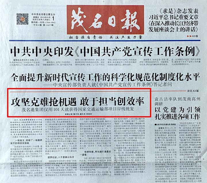 “那時候覺得挺艱難的,現(xiàn)在回想,卻是充滿了甘甜!劉冬回憶起當年的“101天”的故事。在2019年3月底,茂名港博賀新港區(qū)總體規(guī)劃獲得批復,吹響了集團工程大建設的號角,集團立即啟動化工碼頭、油品碼頭的岸線申請、立項報批等工作。劉冬跟隨著集團領導小組的周密部署,多次率集團項目報批組帶齊項目資料拜訪省廳有關部門,做到及時解答釋疑。在報審的過程中,為了使各項報批報建工作加快推進,劉冬帶齊資料主動拜訪有關部門,多次到國家交通部、省交通廳、省生態(tài)環(huán)境廳、省自然資源廳、市交通局等相關部門積極溝通協(xié)調,隨時做好解答匯報。如在設計上,在沒有取得立項之前,先召開內部審查會,先讓專家發(fā)現(xiàn)問題,提前修正初步設計、施工圖設計的內容,大大縮短了今后正式審批的時間。與設計無縫對接,急迫的文件,安排專人坐高鐵或者蹲點設計院,以最快速度取得成果。終于,在多方努力下,僅用時101天,拿到了東區(qū)油品碼頭的岸線批復,創(chuàng)造了茂名的岸線批復史的一個歷史,得到了交通部、省交通廳的一致好評。 “茂名已經盼了深水大港一百多年了,不能,也不應該再等了!長期的奔走,讓劉冬總結出了一套工作方法——“普遍+靶向”工作法:即先普遍后攻堅的各個擊破方式,明確主攻方向和核心突破口,并像釘子一樣深深地楔進每一個關鍵環(huán)節(jié)。“方法很笨,但是很奏效!劉冬謙虛地介紹道“工作關鍵是溝通,溝通的關鍵在高效的往來反饋”。幾年下來,劉冬在這套工作方法的支持下,參與推動博賀新港區(qū)東西防波堤、化工碼頭建設、30萬噸原油碼頭等項目的報批報建、茂名港口岸擴大開放等工作圓滿落地。