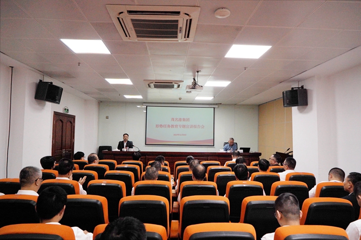 近日,茂名港集團舉辦形勢任務教育宣講報告會,邀請茂名市檔案館館長張善標作專題宣講。集團黨委委員、副總裁周成主持會議。集團黨委領導班子成員、集團中層以上領導、各黨支部委員、黨員代表約70人參加報告會。