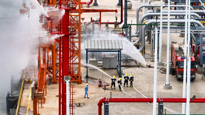 此次演練是集團(tuán)在博賀新港區(qū)投產(chǎn)前最接近實(shí)操的實(shí)戰(zhàn)演練,旨在提高企業(yè)處理泊位緊急事故的應(yīng)變和整體協(xié)調(diào)能力,提高應(yīng)急人員對(duì)泊位突發(fā)事故的應(yīng)急指揮、操作聯(lián)動(dòng)和救援水平。在各方的共同努力下,經(jīng)過1小時(shí)緊張有序的應(yīng)急處置,成功控制油料泄漏事故,圓滿完成演練任務(wù),標(biāo)志著博賀新港區(qū)油品碼頭和化工碼頭投產(chǎn)運(yùn)營(yíng)工作已完成關(guān)鍵節(jié)點(diǎn)。 陳力表示,此次演練增強(qiáng)了轄區(qū)碼頭企業(yè)、船舶企業(yè)及相關(guān)單位的防污染意識(shí)和聯(lián)合作戰(zhàn)能力,有效落實(shí)了港口單位污染防治主體責(zé)任,將有力推動(dòng)港口運(yùn)輸生產(chǎn)和海洋環(huán)境保護(hù)協(xié)調(diào)發(fā)展。 李昱祺表示,本次演練充分展示了集團(tuán)下屬子公司在應(yīng)急指揮、操作聯(lián)動(dòng)和救援水平等方面的綜合管理能力,為后續(xù)投產(chǎn)運(yùn)營(yíng)提供了寶貴經(jīng)驗(yàn)。下一步,集團(tuán)將繼續(xù)做好人員培訓(xùn)、常態(tài)化應(yīng)急演練等工作,進(jìn)一步提高協(xié)調(diào)作戰(zhàn)能力,為茂名港域平安港口建設(shè)貢獻(xiàn)力量。 此次演練還得到了茂名石化北山嶺消防中隊(duì)、廣東海安水運(yùn)技術(shù)服務(wù)有限公司、茂名昌利船舶有限公司、茂名眾和海上防污工程有限公司等單位的大力支持與協(xié)助。