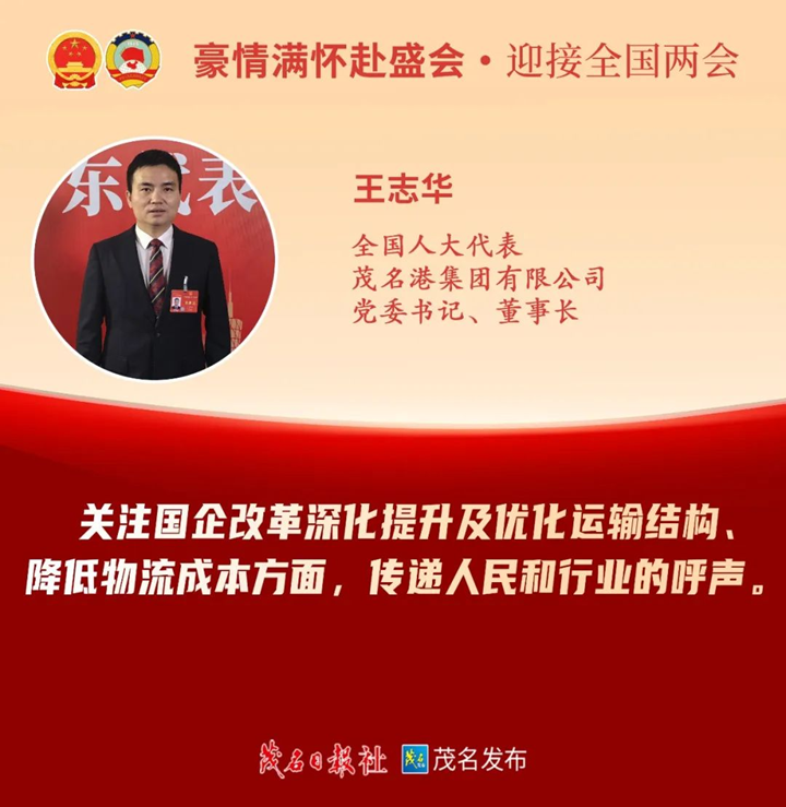 3月5日上午,十四屆全國人大二次會議在北京人民大會堂開幕。國務(wù)院總理李強作的政府工作報告,引發(fā)茂名全國人大代表熱議。大家認為,報告通篇貫穿習(xí)近平新時代中國特色社會主義思想,總結(jié)成績振奮人心、分析形勢深刻透徹,科學(xué)提出今年發(fā)展主要預(yù)期目標(biāo)和政策取向,部署實施一系列重大舉措,是一份提振信心、催人奮進的好報告。王志華表示,政府工作報告以習(xí)近平新時代中國特色社會主義思想為指導(dǎo),總結(jié)了2023年在復(fù)雜的國際國內(nèi)形勢下取得的七個方面成績,對2024年工作進行了部署安排,令人鼓舞,催人奮進。報告強調(diào)要降低物流成本,旨在降低全社會物流成本,形成統(tǒng)一高效、競爭有序的物流市場,大力發(fā)展臨空經(jīng)濟、臨港經(jīng)濟。茂名的傳統(tǒng)支柱產(chǎn)業(yè)石化、農(nóng)業(yè)、建筑業(yè)和大力發(fā)展的綠色化工、新型儲能、新材料等行業(yè),都非常依賴大運力的港口物流交通。茂名市委、市政府高度重視港口建設(shè),自2012年開始,累計投入近百億元,打造的“海鐵公管空”立體交通網(wǎng)絡(luò)已基本成型。隨著港口吞吐量快速增長,希望加快完成茂名港博賀新港區(qū)、吉達港區(qū)建設(shè),盡快正式對外開放,有力支撐茂名對外貿(mào)易和制造業(yè)產(chǎn)業(yè)發(fā)展;建議自然資源、交通運輸、發(fā)展改革、生態(tài)環(huán)境等有關(guān)部門,全力支持博賀新港區(qū)申報填海造陸工程,推動港口與臨港產(chǎn)業(yè)聯(lián)動發(fā)展,不斷降低物流成本;建議針對發(fā)展新形勢、新情況,再一次啟動打通港口連接路的摸查,打通連接港口“最后一公里”,助力臨港產(chǎn)業(yè)高質(zhì)量發(fā)展。 3月6日 參加廣東省代表團小組會議