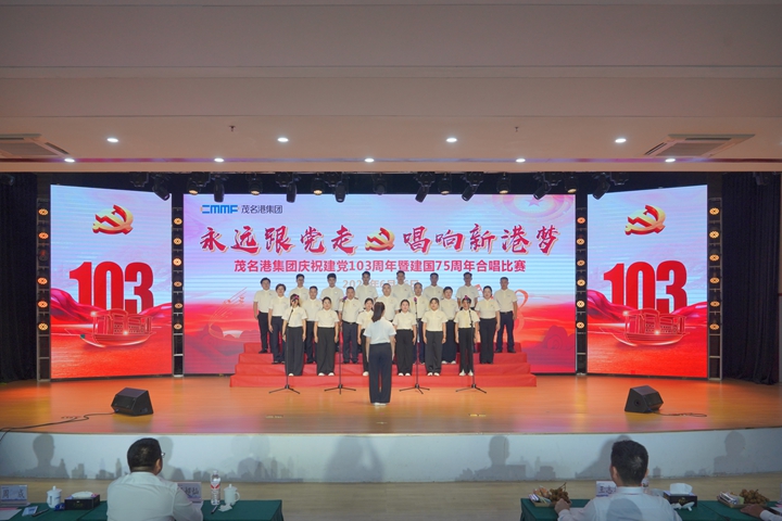 6月26日,茂名港集團舉辦慶祝建黨103周年暨建國75周年“永遠跟黨走,唱響新港夢”主題紅歌大合唱比賽。來自集團各黨支部的8支代表隊參加,以紅歌傳唱為契機、以紅色歌曲為傳播載體,重溫中國共產(chǎn)黨的崢嶸歲月和光輝業(yè)績,并以最美好的祝福,向黨的103歲誕辰、新中國成立75周年獻禮!