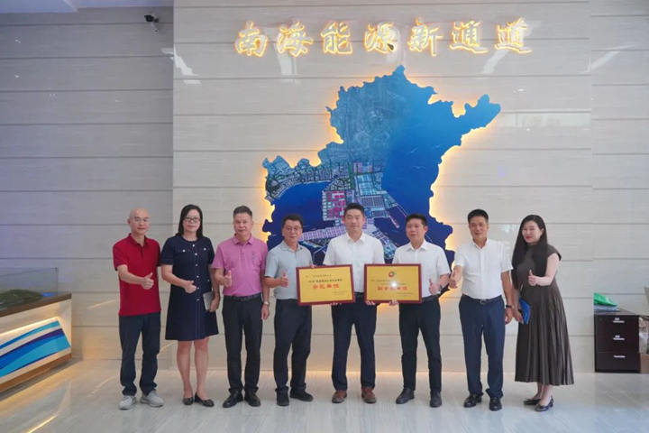 蔣斌一行首先察看博賀新港區(qū)規(guī)劃沙盤及企業(yè)文化墻并舉行了授牌儀式。他代表廣東省企業(yè)文化研究會向集團(tuán)授予了“副會長單位”及“2024廣東省推動企業(yè)社會責(zé)任示范單位”榮譽(yù)稱號,朱廣宇代表茂名港集團(tuán)接受兩項榮譽(yù)牌匾。