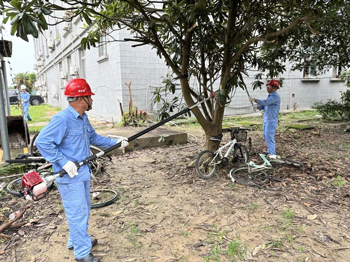 隨后,黨員們分成多個小組,分別進行了三項主要內容:“修枝”—對庫區(qū)內的樹木進行修剪,確保樹枝不會因臺風而斷裂,造成安全隱患;“護綠”—對辦公區(qū)周邊綠化帶進行雜草清理,美化環(huán)境的同時也為防御臺風做好準備;“防臺”—檢查并加固易受損區(qū)域,清理排水系統(tǒng),確保臺風來臨時能夠有效應對,減少損失。 在活動中,黨員們不畏辛勞,充分展現了不怕臟、不怕累的精神風貌。他們手持工具,細心修剪每一株植物,仔細檢查每一處可能存在的安全隱患,用實際行動詮釋了“我是黨員,我先行”的責任與擔當。