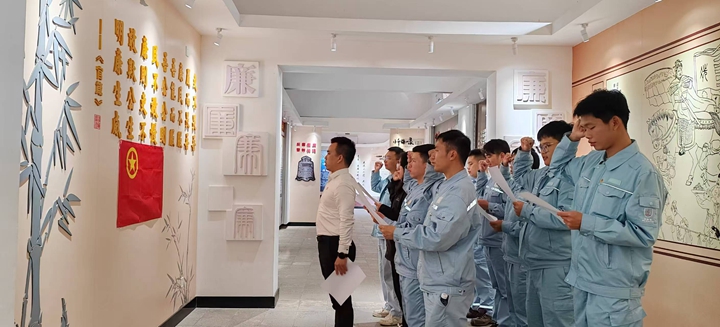 在反腐倡廉教育基地,團(tuán)支部書記岑俊慧帶領(lǐng)團(tuán)員青年們重溫入團(tuán)誓詞,新、老團(tuán)員青年面向團(tuán)旗整齊站立,在激昂的宣誓聲中,團(tuán)員們重溫入團(tuán)時(shí)的初心與使命,進(jìn)一步堅(jiān)定理想信念,增強(qiáng)作為一名共青團(tuán)員的光榮感和責(zé)任感。