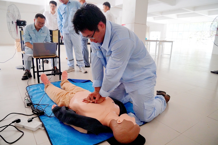 本次競賽立足實戰(zhàn)需求,設(shè)置“心肺復(fù)蘇急救”與“消防操作”兩大競技單元。在“心肺復(fù)蘇急救”賽場上,隨著評委“開始”指令下達,選手們立即投入緊張的急救流程:迅速評估環(huán)境、準(zhǔn)確判斷意識、實施標(biāo)準(zhǔn)胸外按壓、進行有效人工呼吸……整套動作精準(zhǔn)連貫,操作規(guī)范到位,爭分奪秒搶救生命。經(jīng)過激烈比拼,來自海港股份公司選手王國偉憑借出色的綜合表現(xiàn),勇奪該項目一等獎。